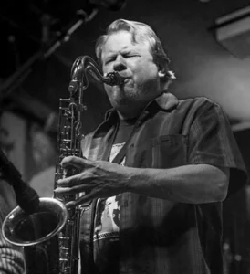 Kris Jensen Tenor Sax was a member of both the Dickey Betts Band and DB & Great Southern. Bringing the experience of a myriad of musical styles, from jazz, rock, soul, to Afro-Latin-Cuban, Kris added warm third voice to the signature, searing twin-guitar harmonies of the Dickey Betts/Allman Brothers Bands. He later joined Jaimoe’s Jasssz Band and performed with Gregg Allman and Friends.